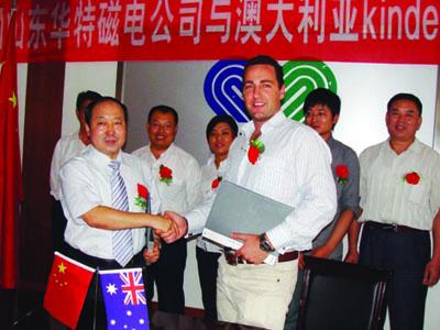 9月19日,我公司與澳大利亞kinder公司代理合作協(xié)議簽訂儀式在公司二樓會(huì)議室舉行,公司董事長(zhǎng)兼總經(jīng)理王兆連與kinder公司技術(shù)總經(jīng)理查爾斯charles在協(xié)議上簽字。
